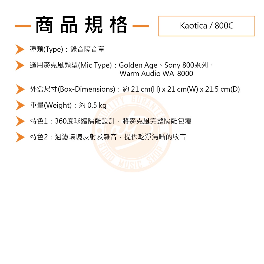 Kaotica / 800C 專業音場球型隔音罩(Golden Age、Sony 800等適用)【樂器通】