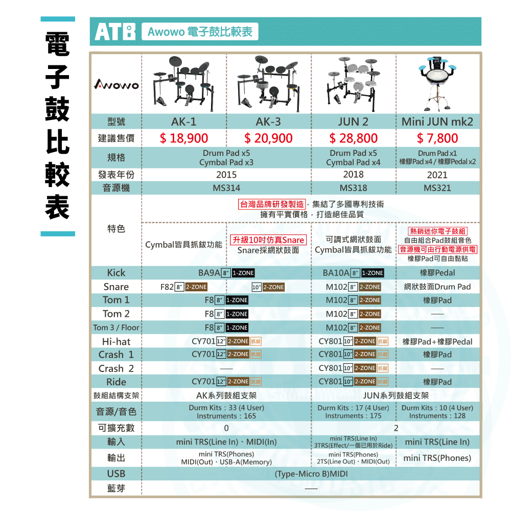 Awowo / Mini Jun mk2 第二代 數位迷你電子鼓組【ATB通伯樂器音響】
