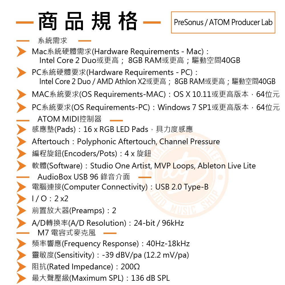 PreSonus / ATOM Producer Lab MIDI控制介面/錄音介面套組【樂器通】