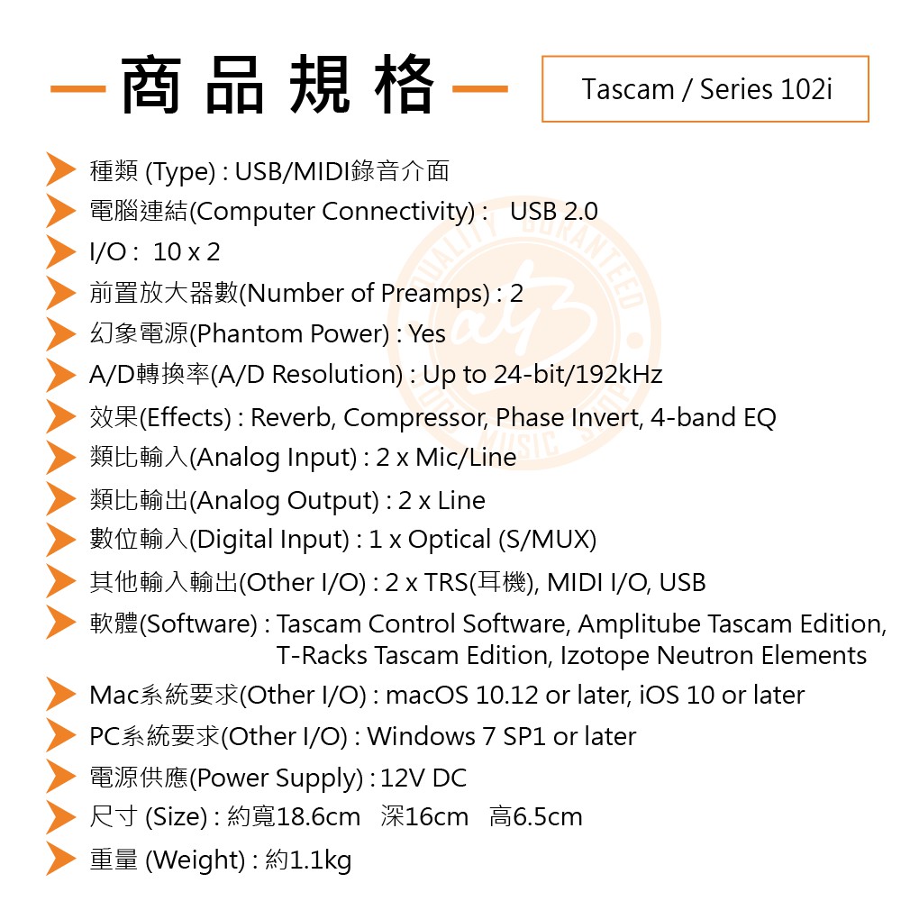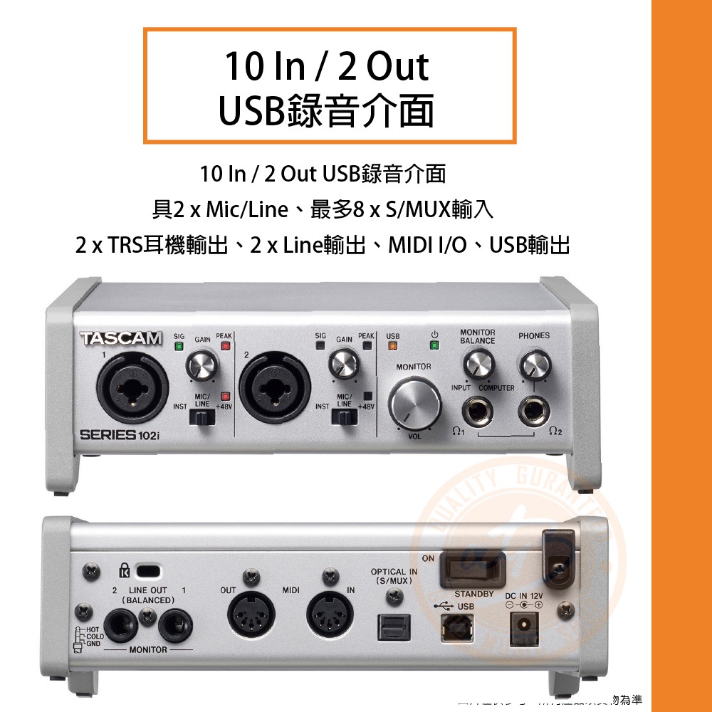 Tascam / SERIES 102i USB錄音介面【樂器通】