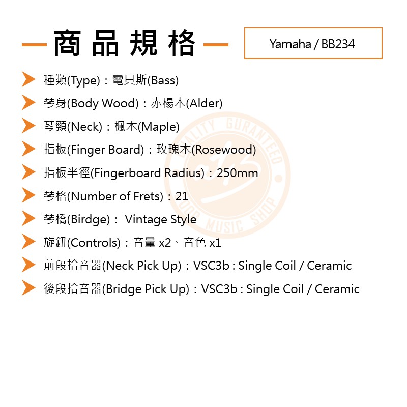 Yamaha / BB234 電貝斯【ATB通伯樂器音響】