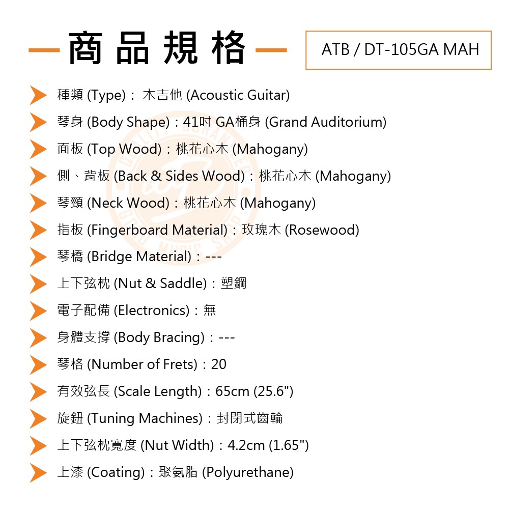 ATB / DT-105GA MAH 木吉他【ATB通伯樂器音響】