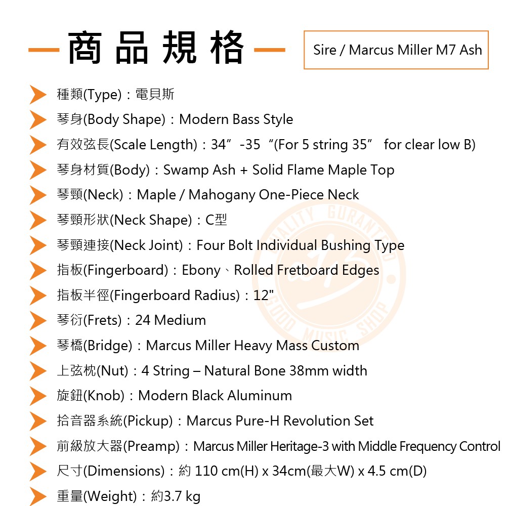 Sire / Marcus Miller M7 Ash 第二代 4弦電貝斯 (2色)【樂器通】