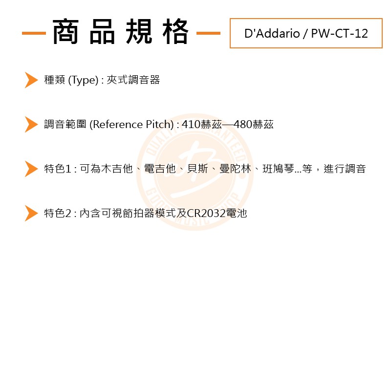 D'Addario / PW-CT-12 琴頭側夾式調音器【樂器通】