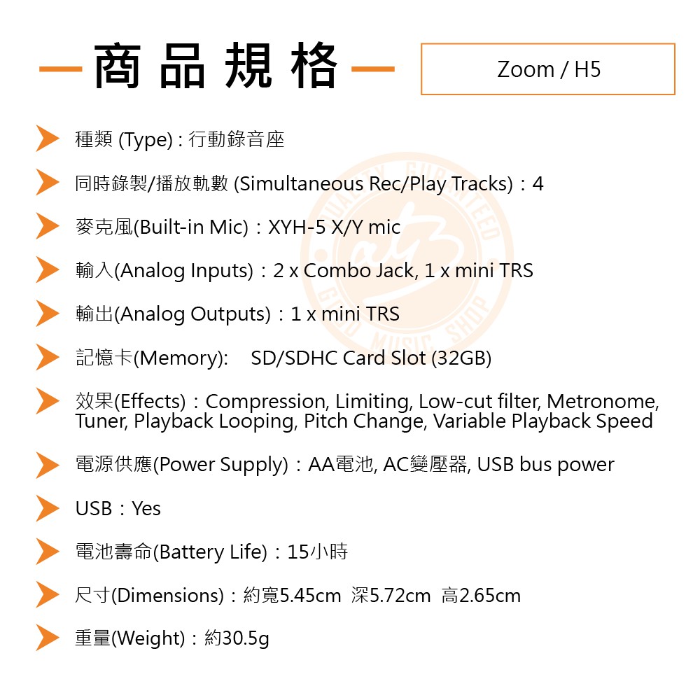 Zoom / H5 4in / 2out行動錄音座(iOS可用)【樂器通】