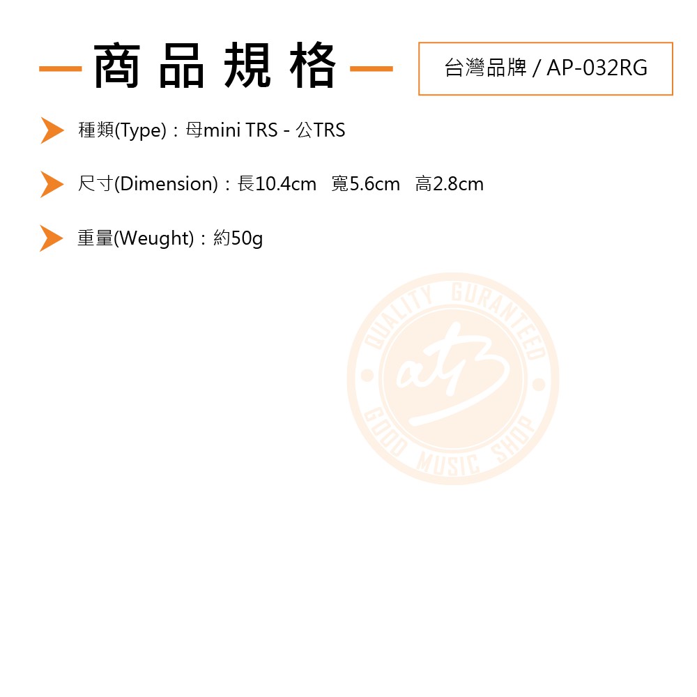 台灣品牌 / AP-032RG 母mini TRS - 公TRS 接頭【樂器通】