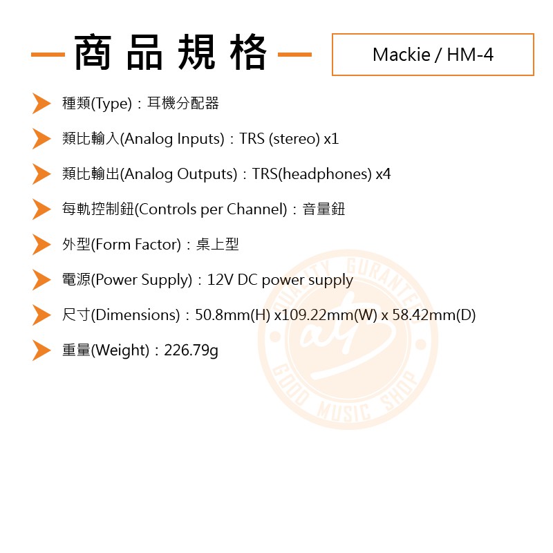 Mackie / HM-4 4軌耳機分配器【樂器通】