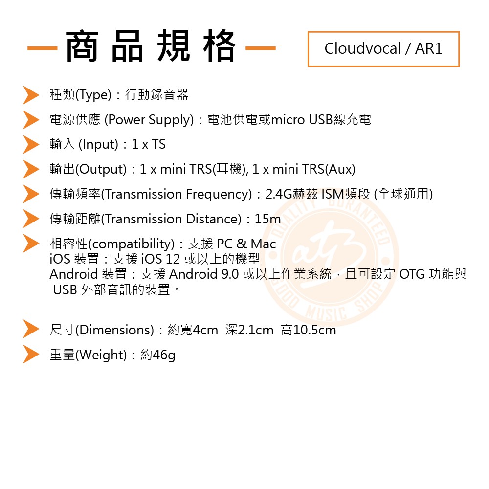 Cloudvocal / AR1 行動錄音座【樂器通】