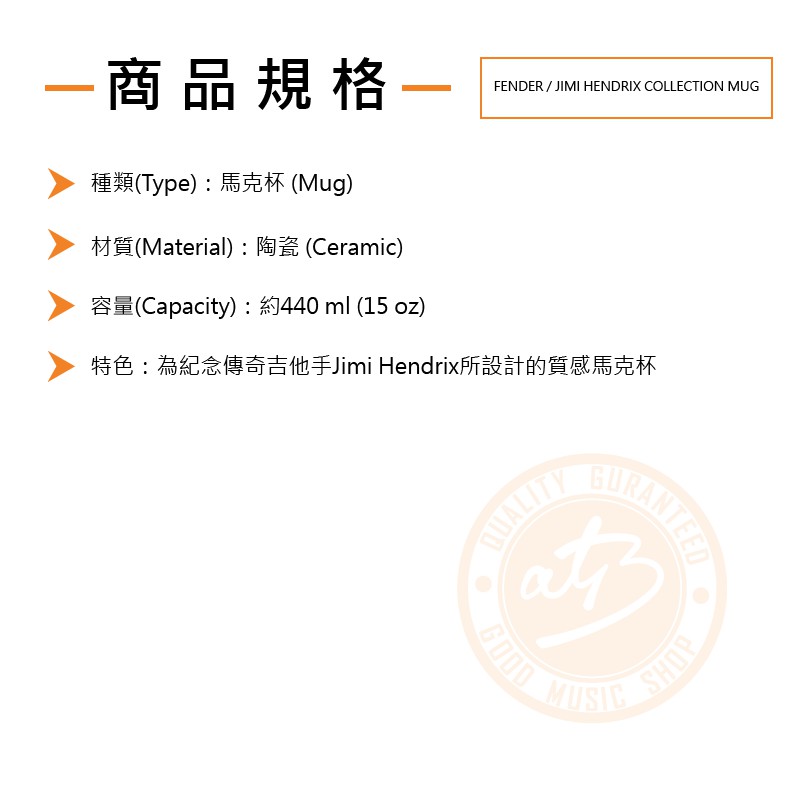 Fender / Jimi Hendrix Collection Mug 馬克杯【樂器通】