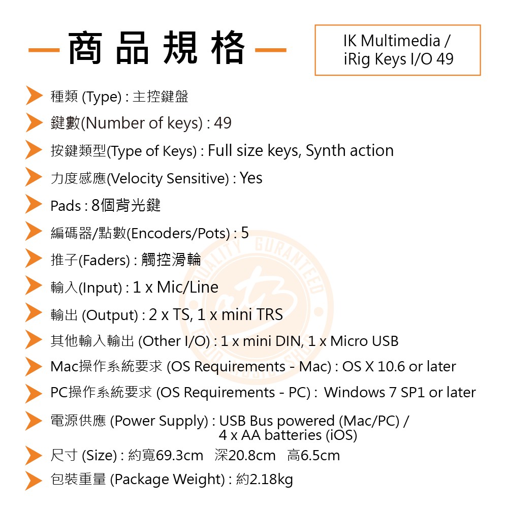 IK Multimedia / iRig KEYS I/O 49 49鍵MIDI主控鍵盤【ATB通伯樂器音響】