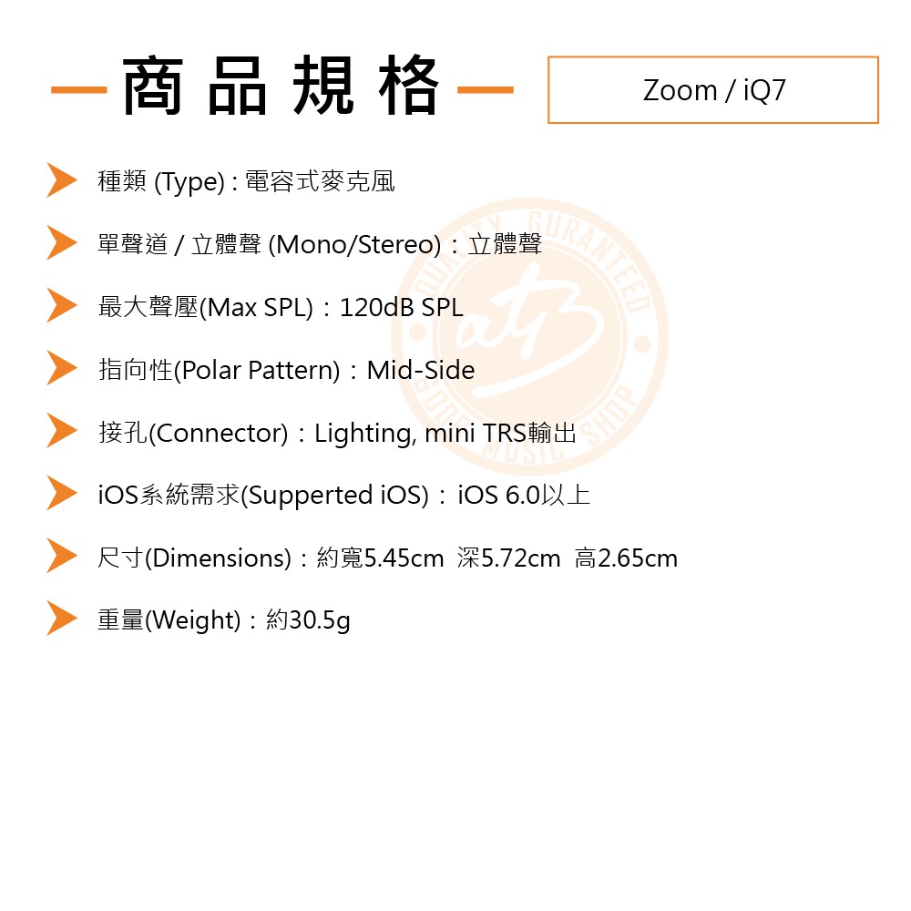 Zoom / iQ7 iOS專用隨身電容式麥克風【樂器通】