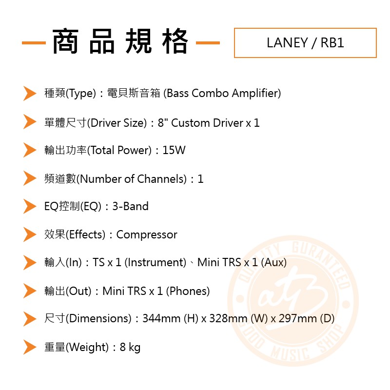 Laney / RB1 電貝斯音箱(15W)【樂器通】