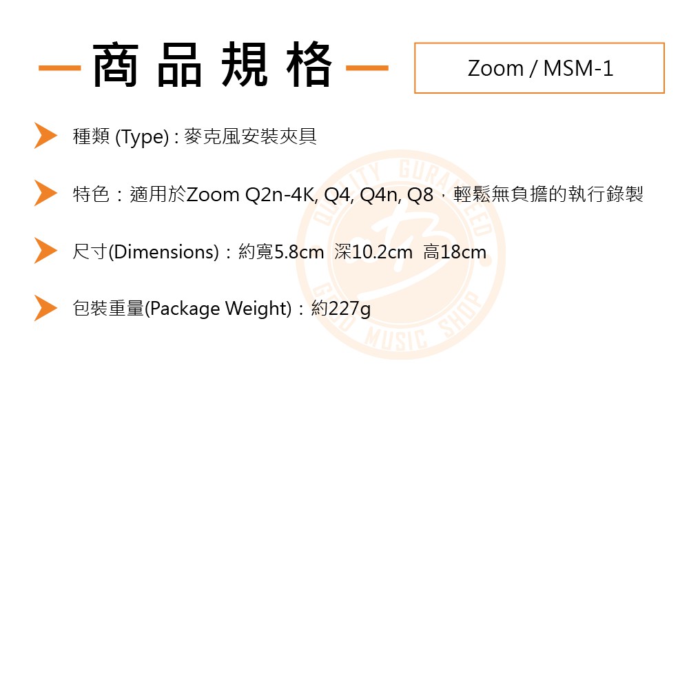 Zoom / MSM-1 麥克風安裝夾具【樂器通】