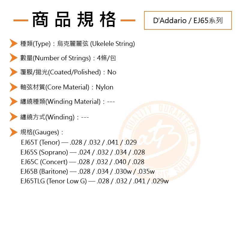 D'Addario / EJ65系列 烏克麗麗弦【樂器通】
