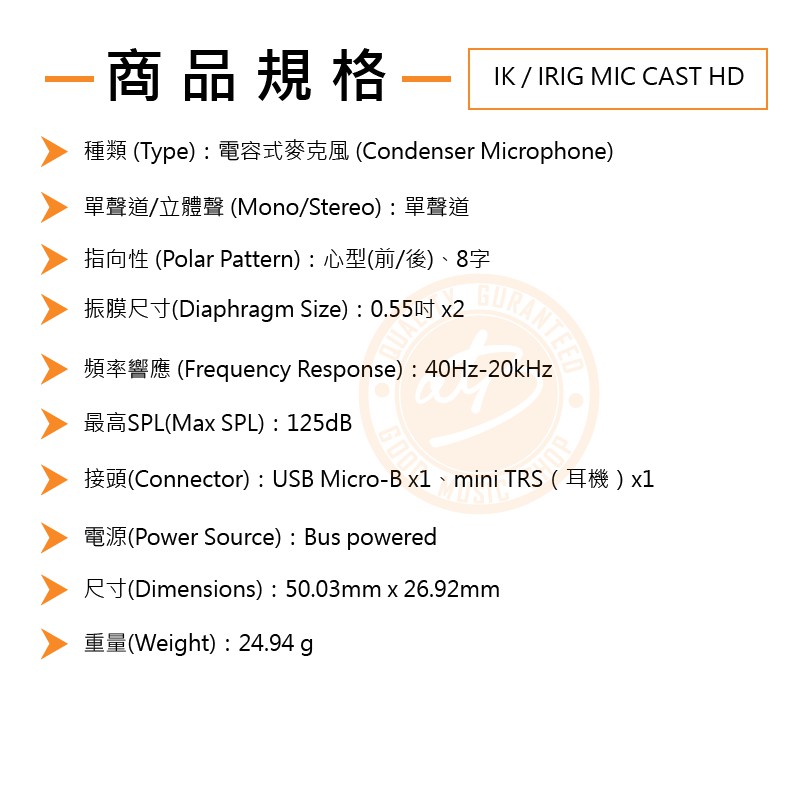 IK Multimedia / IRIG MIC CAST HD 磁吸式 iOS電容式麥克風【樂器通】