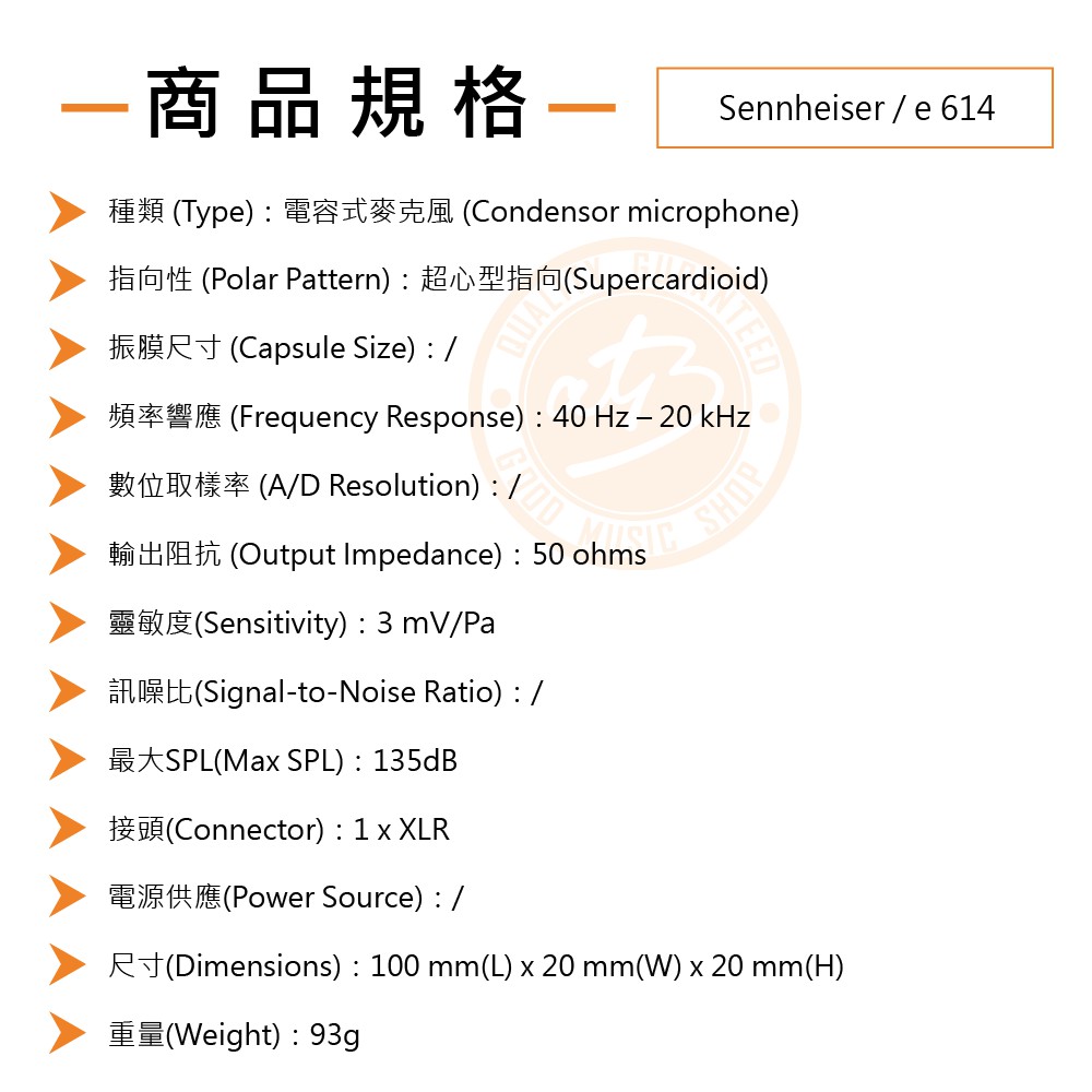 Sennheiser / e 614 銅鈸專用電容式麥克風【樂器通】