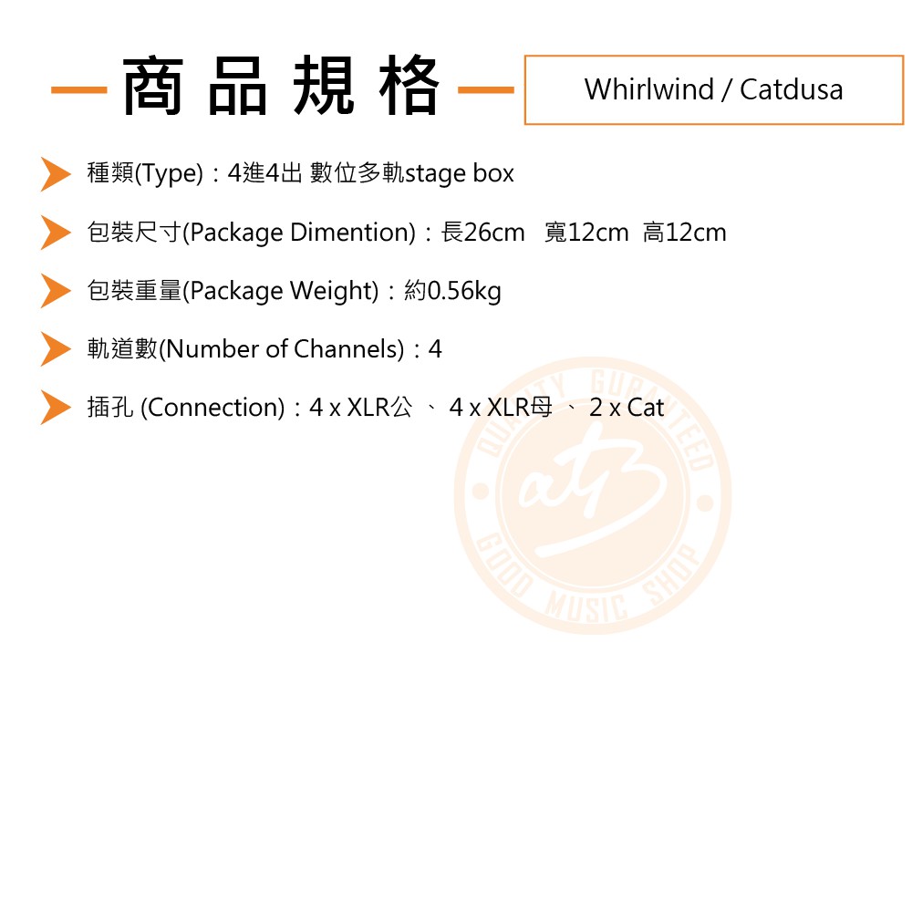 Whirlwind / Catdusa 4in / 4out 數位多軌Stagebox 公司貨保固【ATB通伯樂器音響】