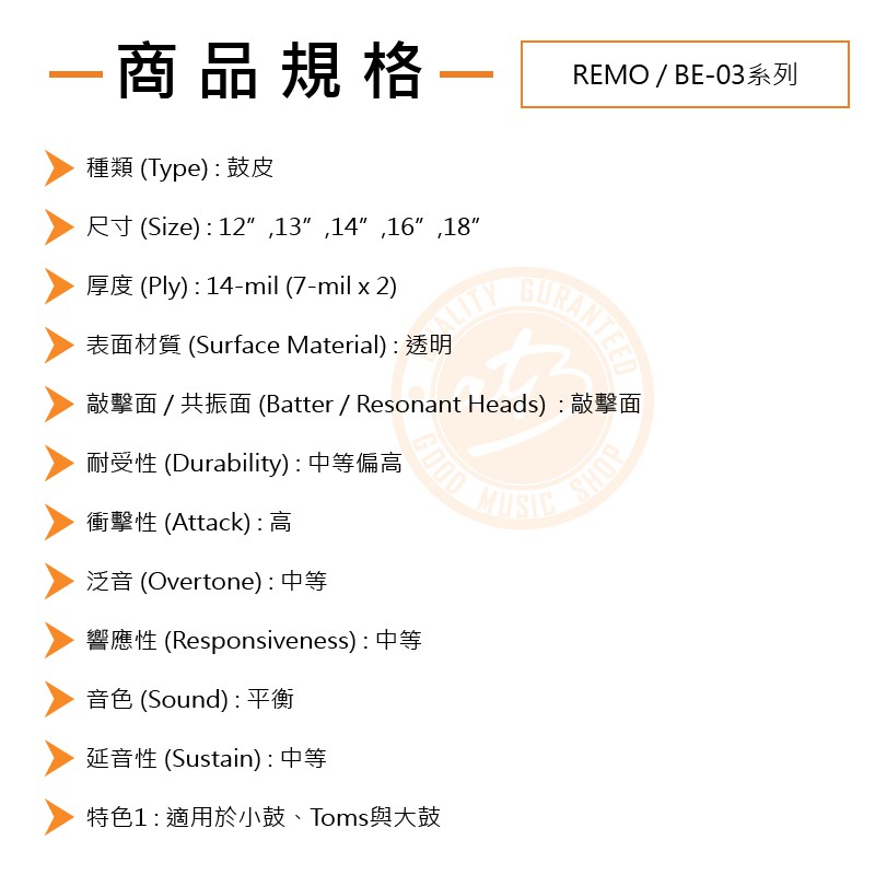 REMO / Emperor 雙層7-mil 透明鼓皮 (BE-03)【樂器通】