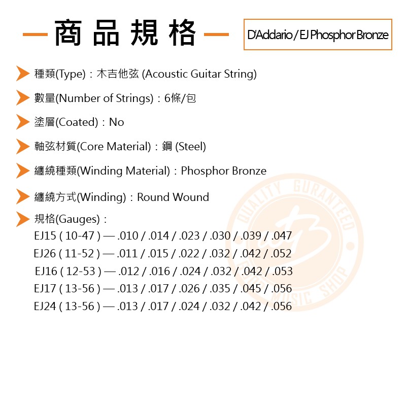 D'Addario / EJ Phosphor Bronze 紅銅 木吉他弦【樂器通】