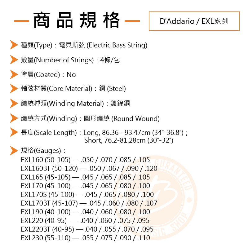 D'Addario / EXL系列 貝斯弦【樂器通】