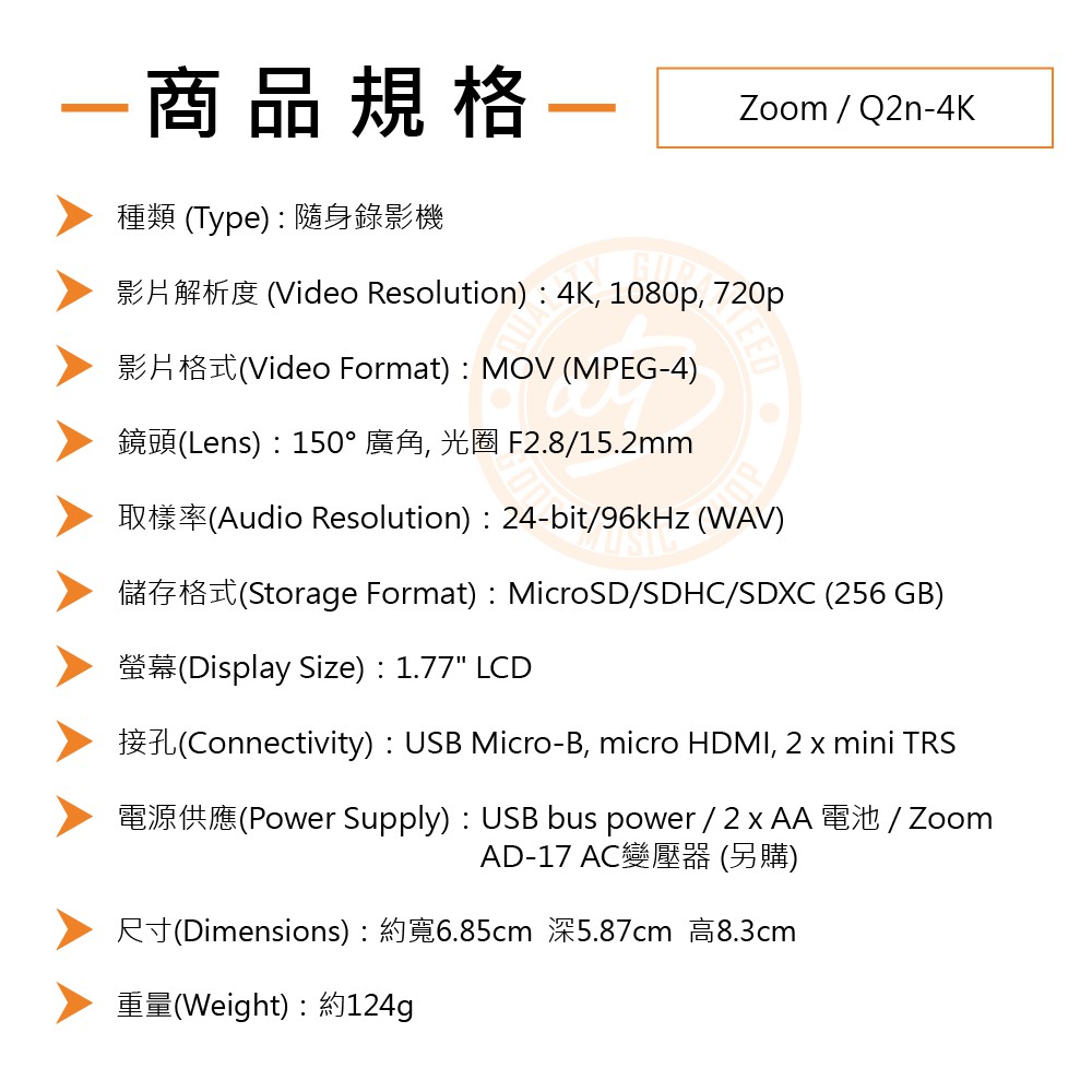 Zoom / Q2n-4K 4K隨身錄影機【樂器通】