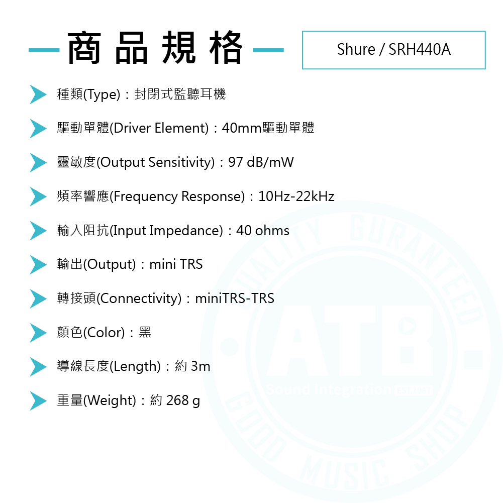 Shure / SRH440A 封閉式監聽耳機(40 ohms)【ATB通伯樂器音響】