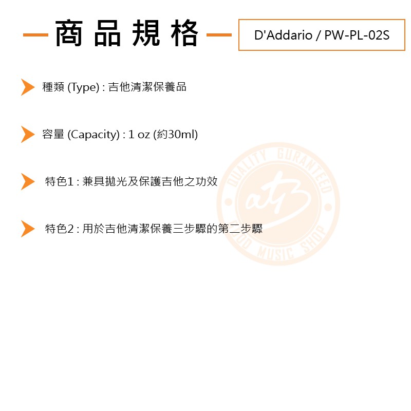 D'Addario / PW-PL-02S 巴西棕梠蠟 30ml (琴身)【樂器通】