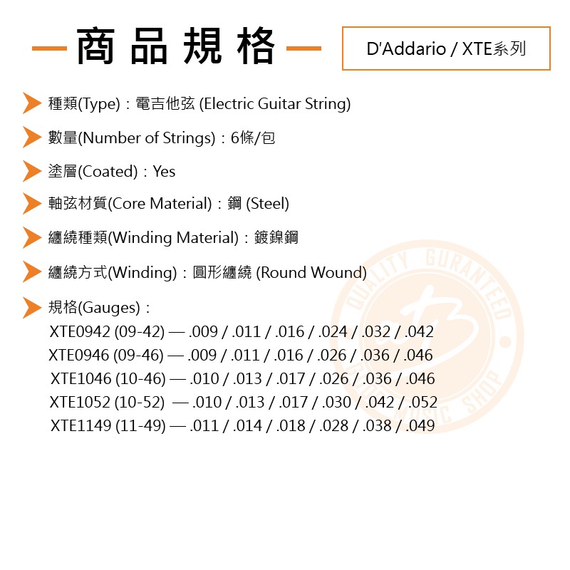 D'Addario / XTE系列 鍍鎳 電吉他弦【樂器通】