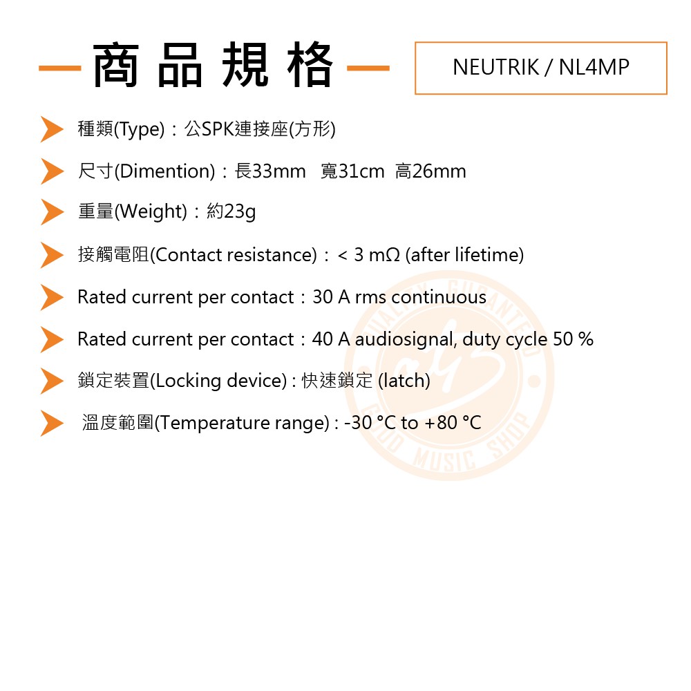 Neutrik / NL4MP 公SPK連接座(方形)【樂器通】