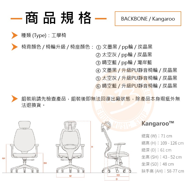 Wavebone / Kangaroo 袋鼠工學椅|熱銷基本款【ATB通伯樂器音響】