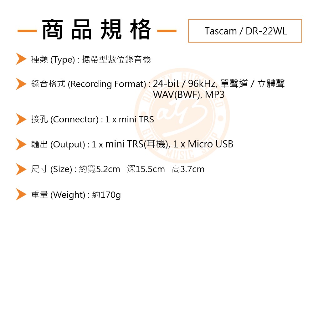 Tascam / DR-22WL 攜帶型數位錄音機【樂器通】