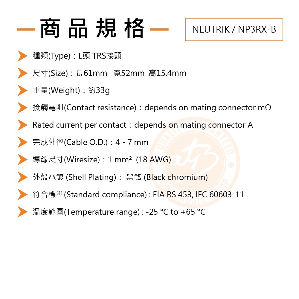 Neutrik / NP3RX-B L頭 TRS接頭【樂器通】