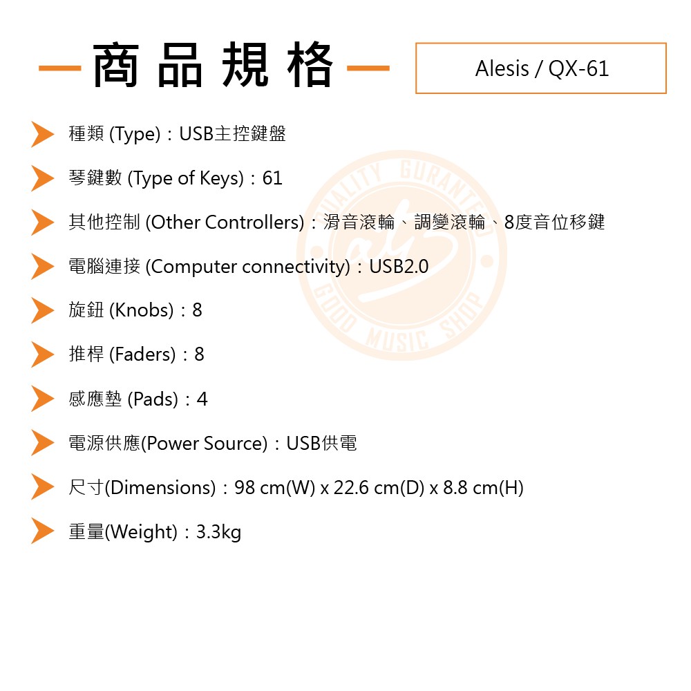 ALESIS / QX-61 61鍵USB主控鍵盤(iOS可用)【樂器通】