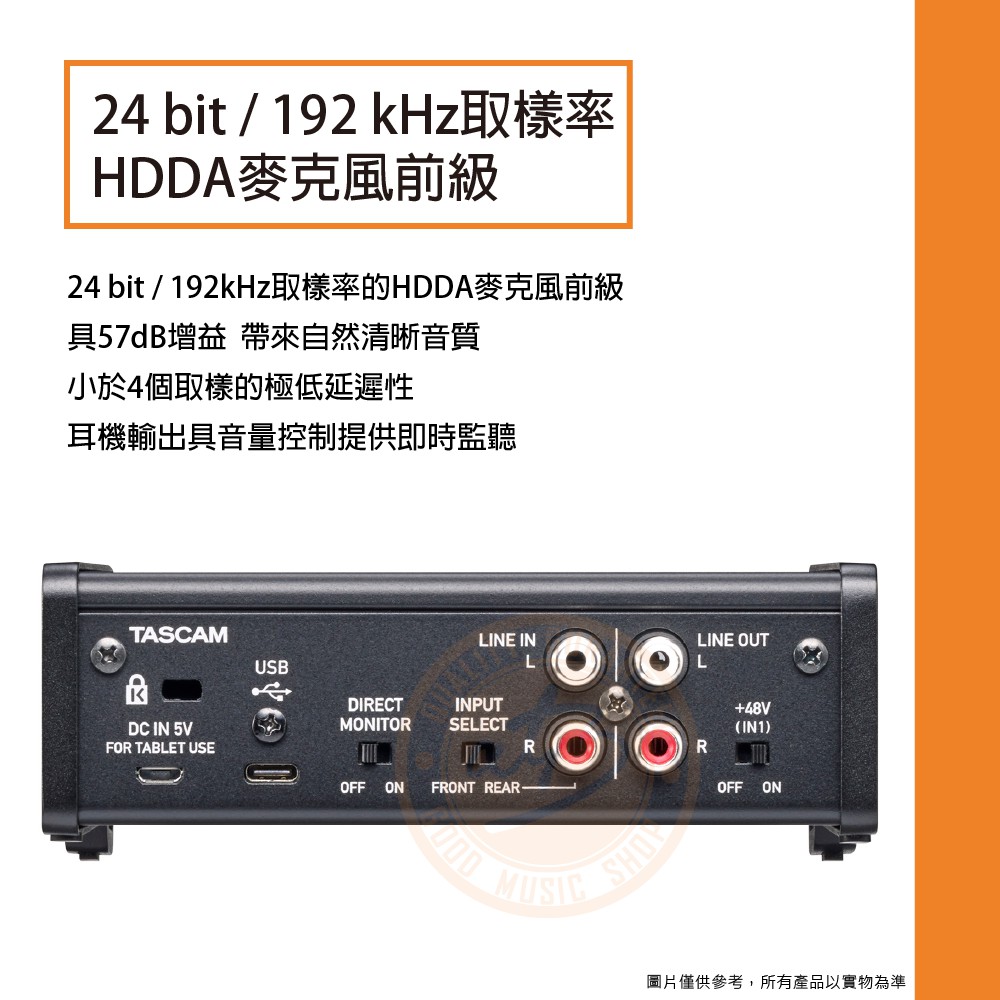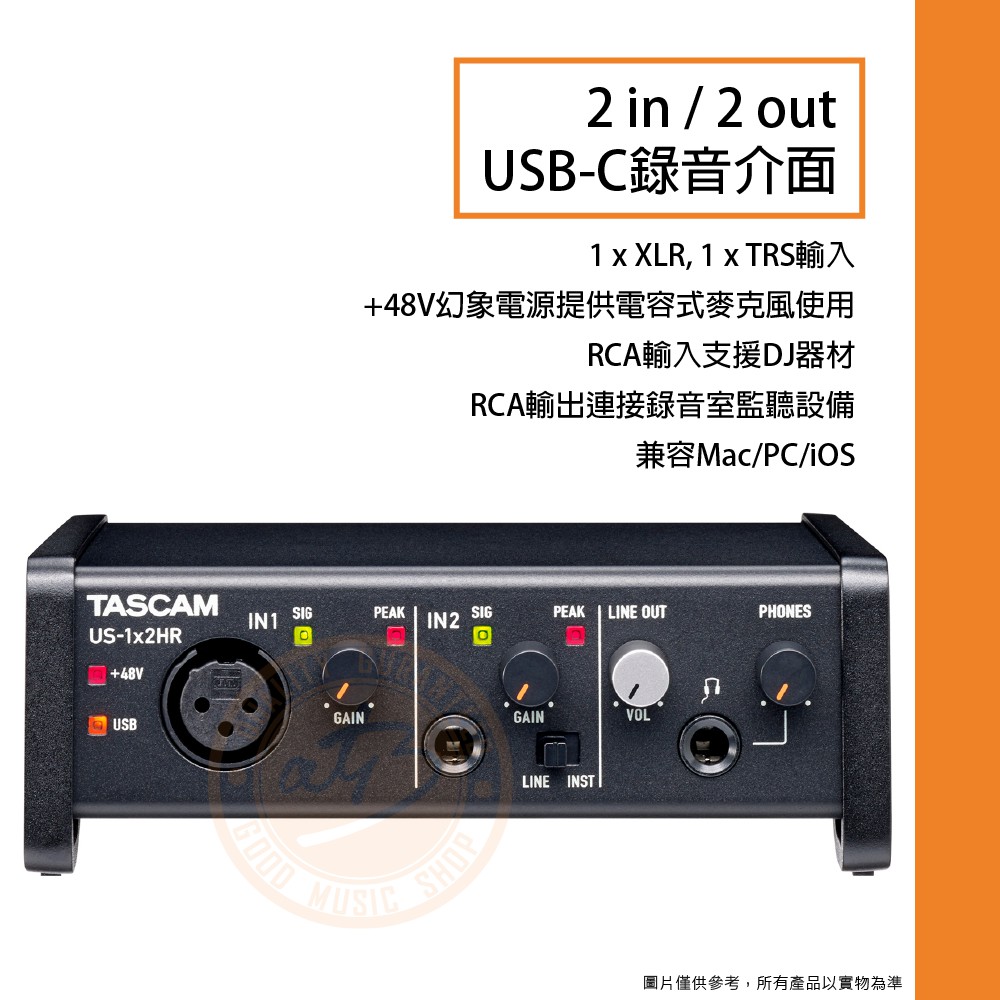 Tascam / US-1x2 HR 2in / 2out USB-C錄音介面(iOS可用)【樂器通】