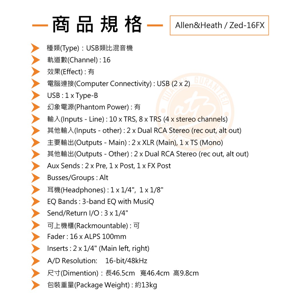 Allen & Heath / ZED-16FX 16軌 USB類比混音機(價格另洽)【ATB通伯樂器音響】