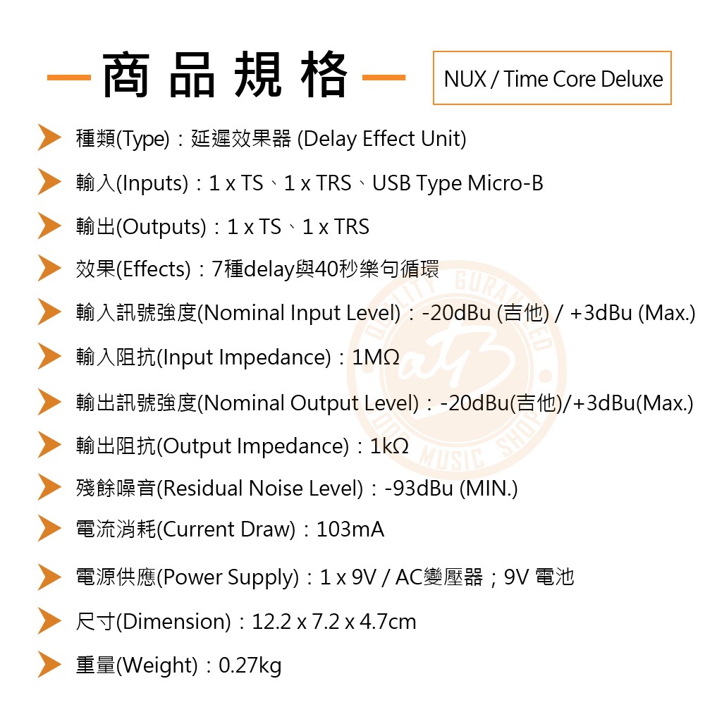 NUX / Time Core Deluxe 延遲效果器(Delay)【樂器通】