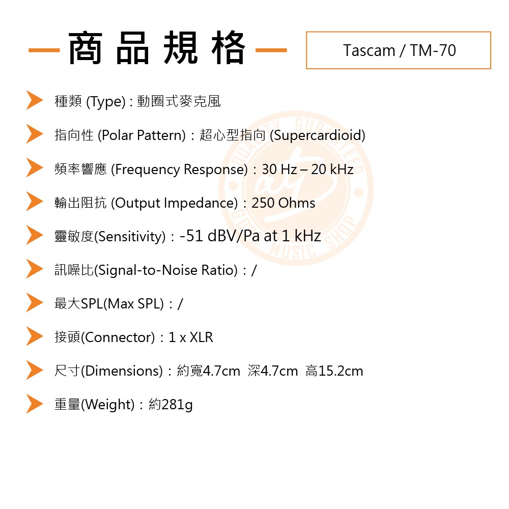 Tascam / TM-70 動圈式麥克風【樂器通】