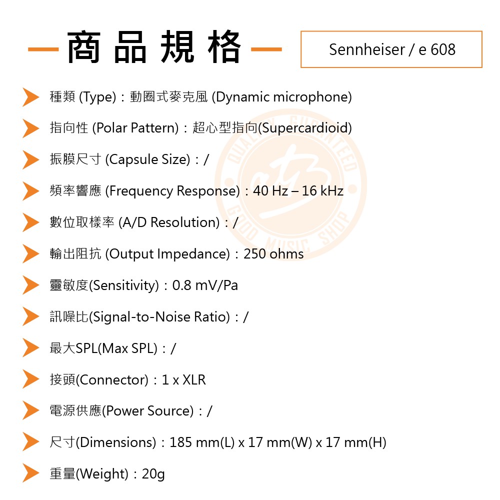 Sennheiser / e 608 銅管木管樂器收音專用麥克風【樂器通】