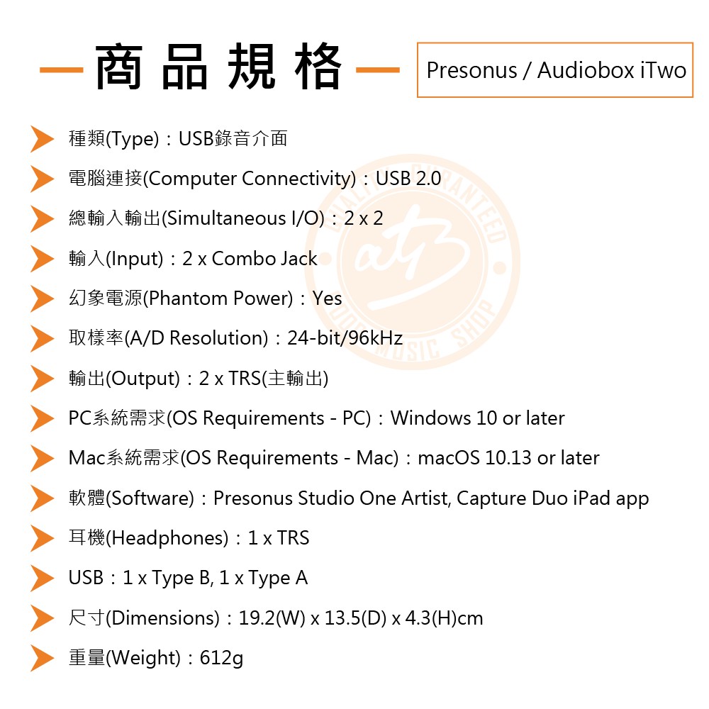 PreSonus / AudioBox iTwo 2 in / 2 out USB錄音介面【樂器通】