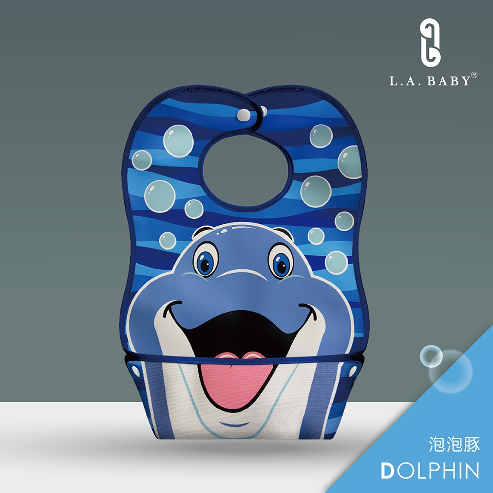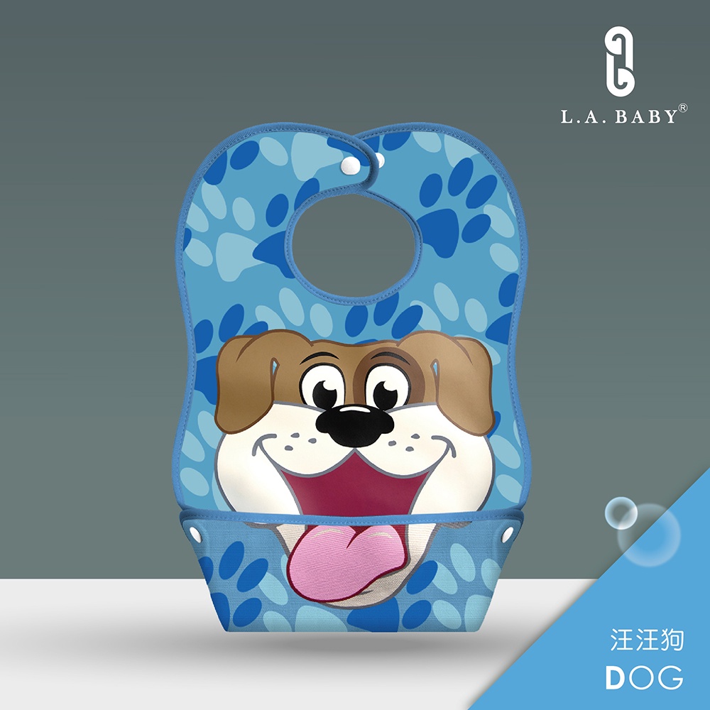 【L.A. Baby】防水立體寬口袋動物圍兜(多款可選)
