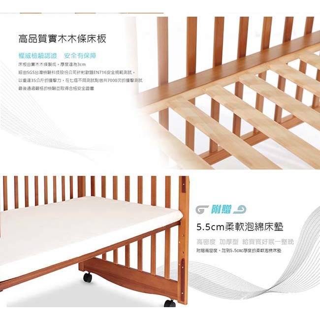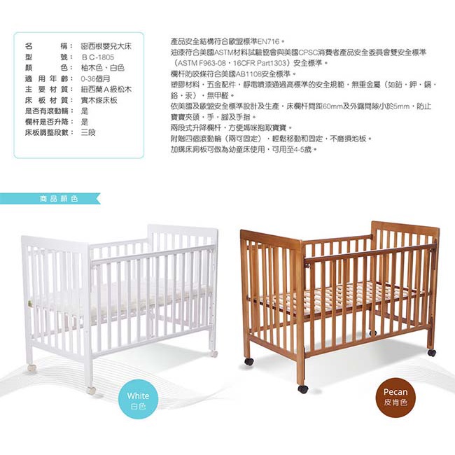 L.A. Baby 密西根三合一嬰兒大床(柚木色/白色/灰色)