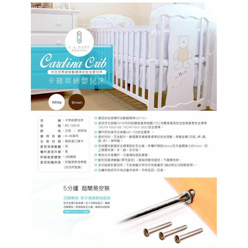 【 L.A. Baby】卡羅萊納嬰兒中床/搖擺床/童床(咖啡色)