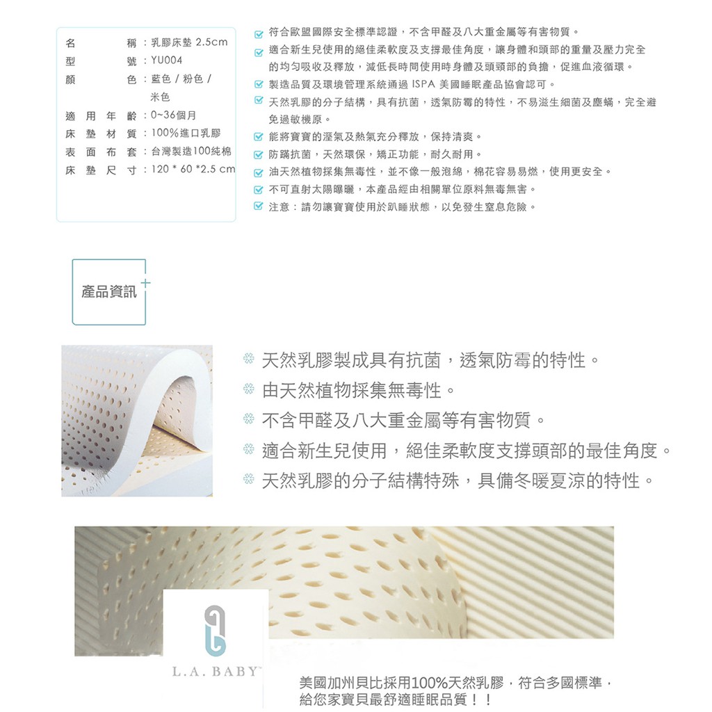 L.A. Baby 天然乳膠床墊中床M號-三色(厚度2.5)