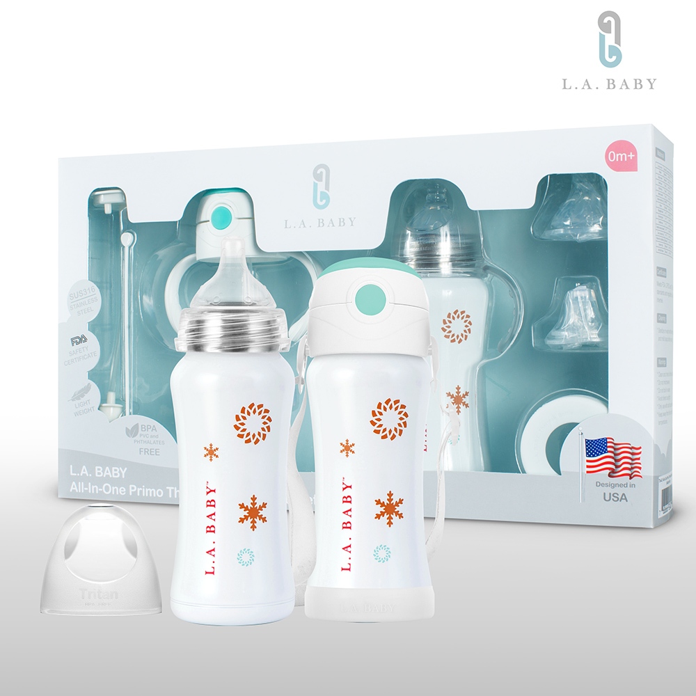 L.A. Baby 四階段316超輕不鏽鋼保溫奶瓶成長禮盒組270ml 15件組(藍 白 紅 金 粉 )