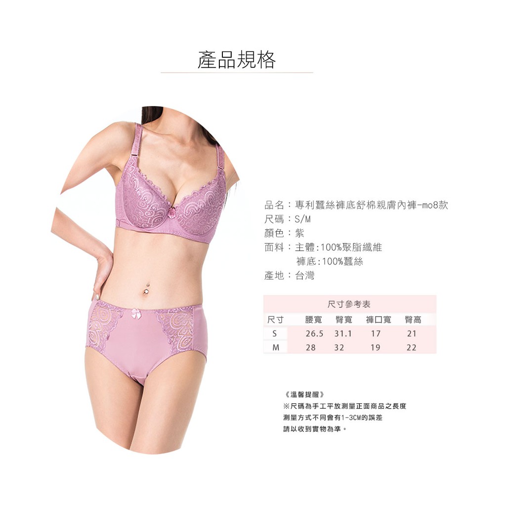 【K's凱恩絲】MIT超柔感側邊蕾絲專利有氧蠶絲內褲(蠶絲褲底)-紫