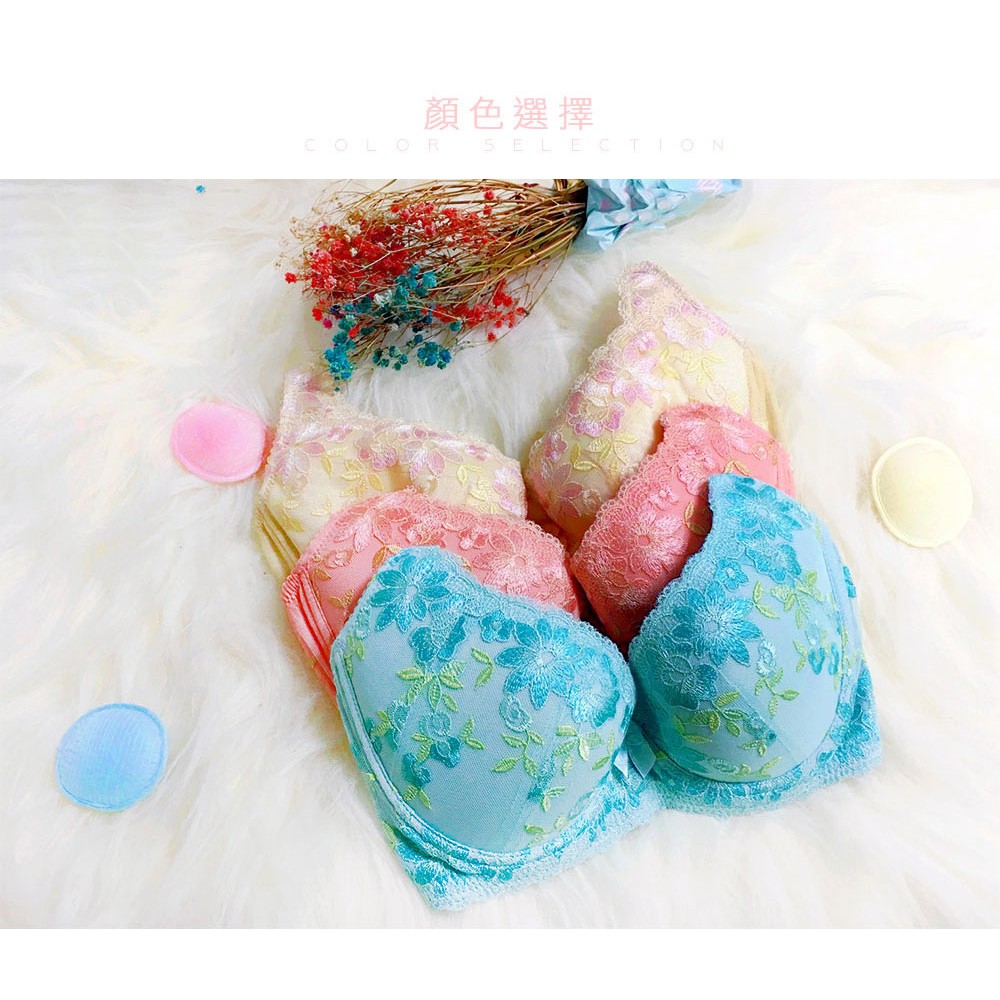 【K's凱恩絲】機能托高蕾絲花朵有氧蠶絲內衣-M10款 A-G罩杯(粉、黃、藍)