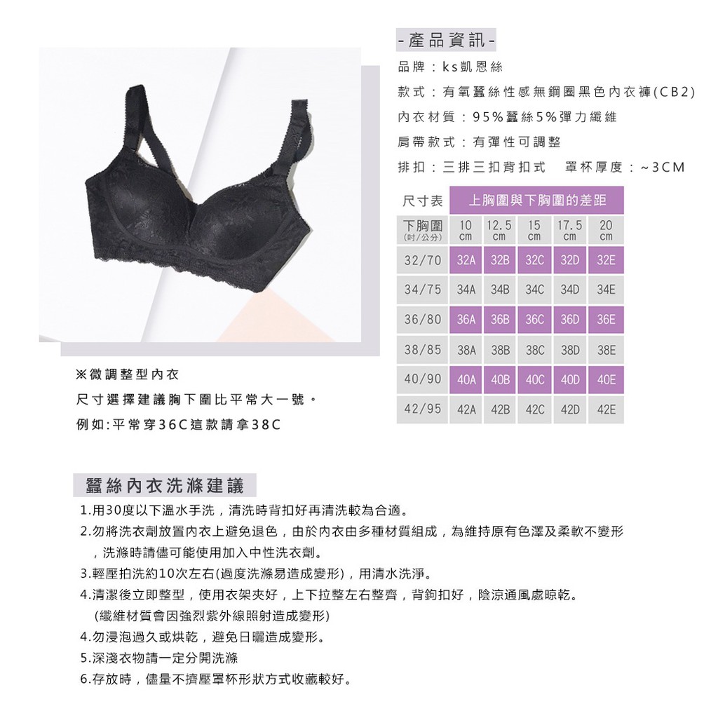 【K's凱恩絲】性感無鋼圈專利有氧蠶絲內衣-CB2款黑色