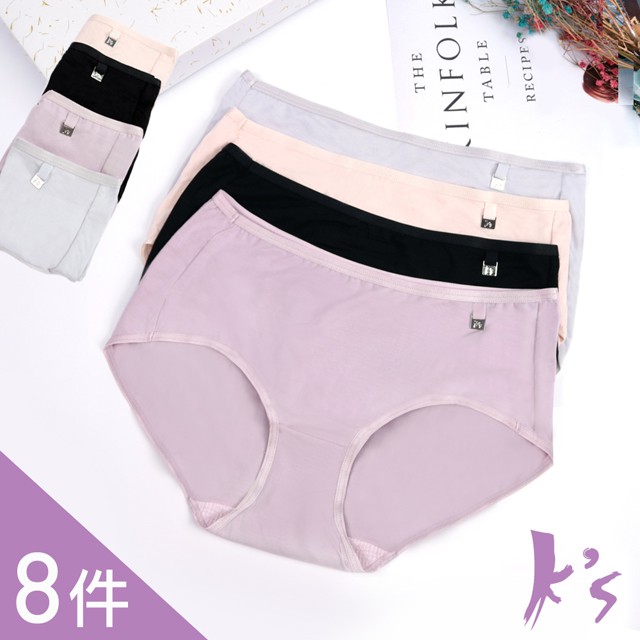 【K's凱恩絲】親膚柔軟莫代爾三角專利蠶絲內褲(蠶絲褲底)-8件組(顏色隨機)