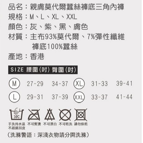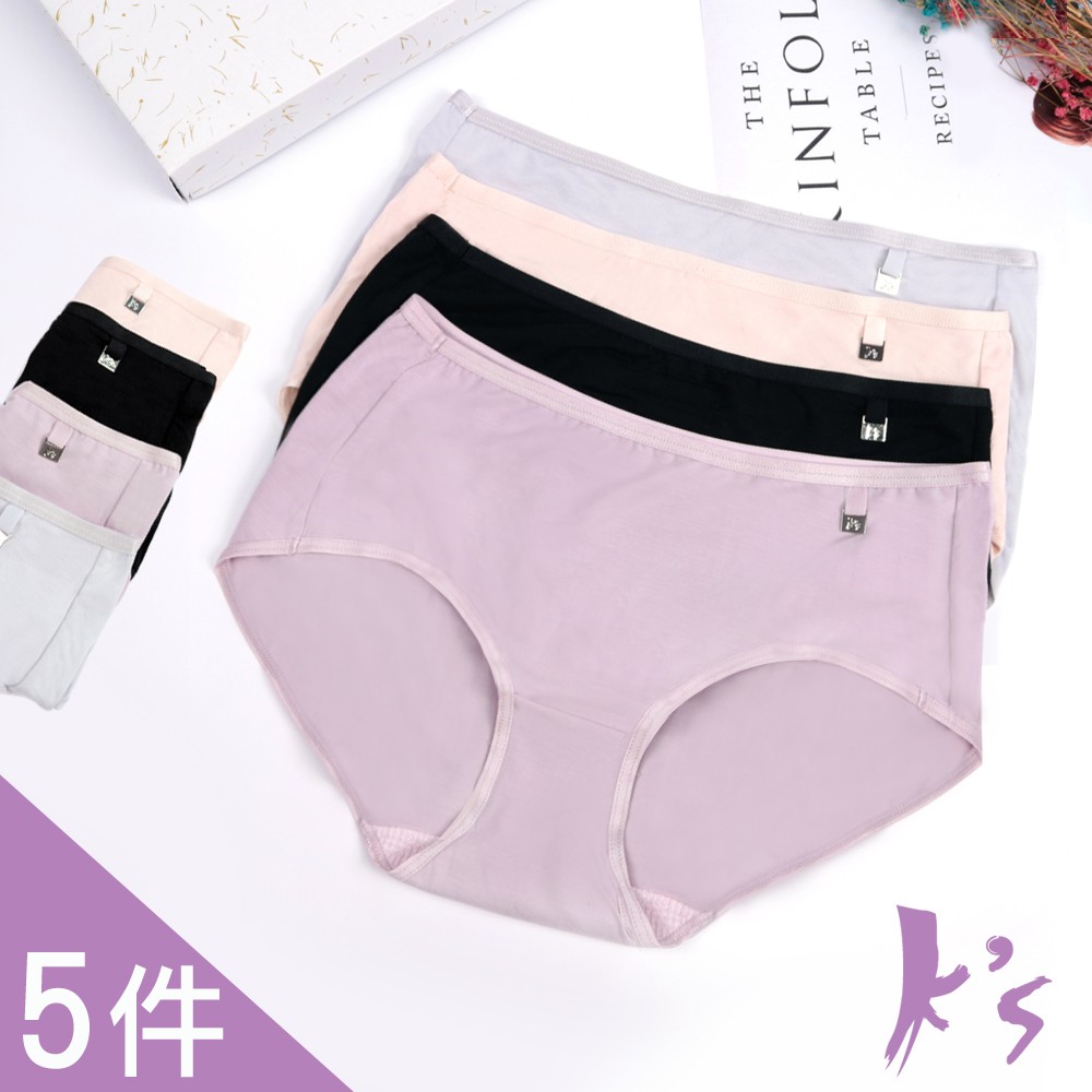 【K's凱恩絲】親膚柔軟莫代爾三角專利蠶絲內褲(蠶絲褲底)-5件組(顏色隨機)