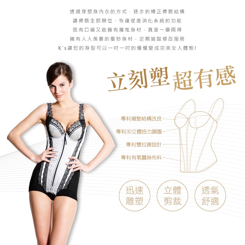 【K's凱恩絲】超薄專利蠶絲塑身內衣-有罩杯連身三角款